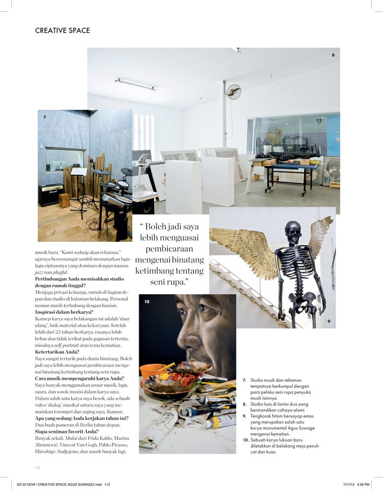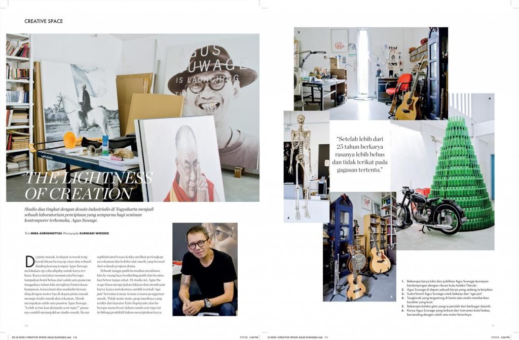 Tearsheets from the same assignment I got from Elle Decor back in February but for a different article. While the earlier article was focused on artist Agus Suwage's house, this one is about his studio which is located just behind the house.